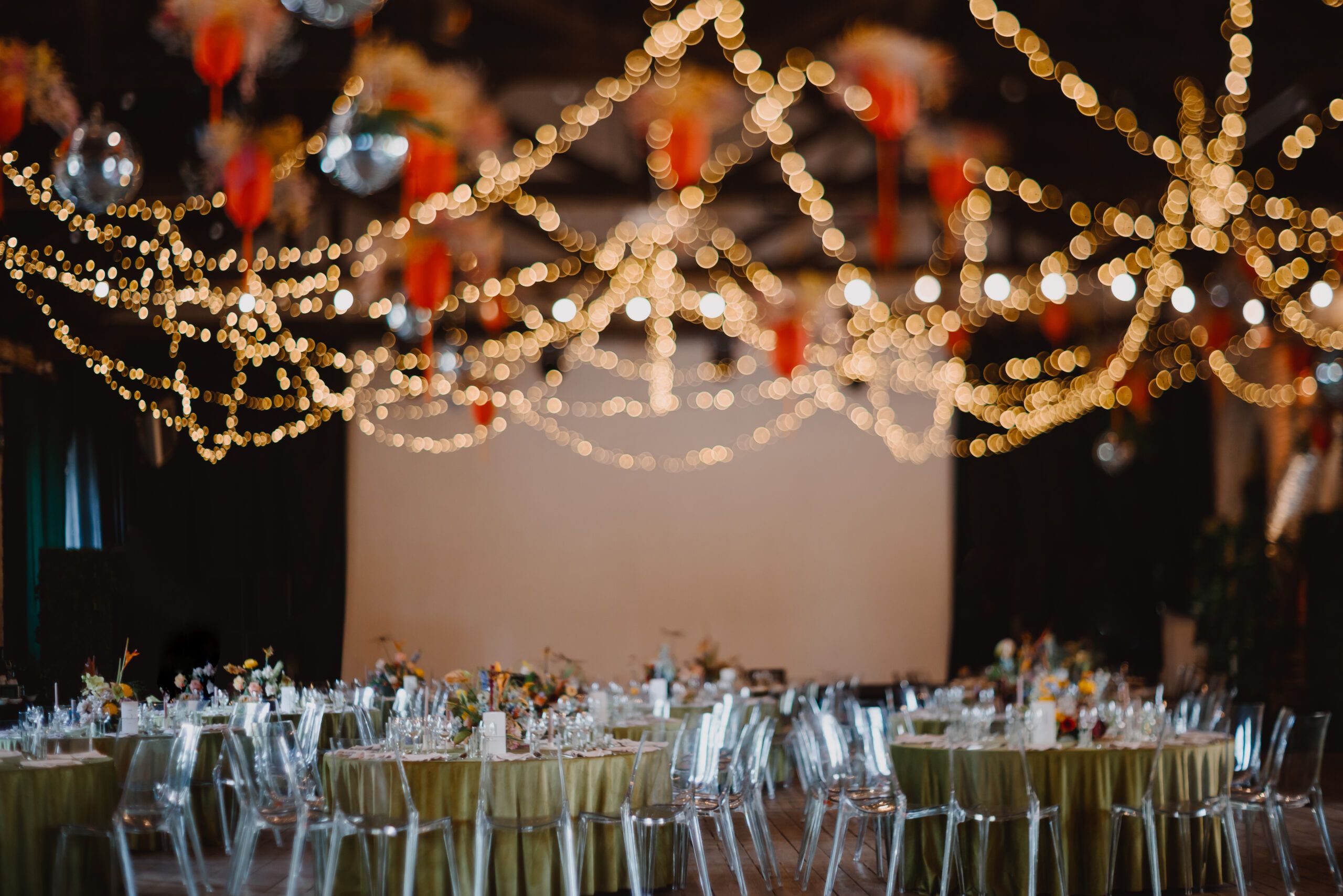 Realizacja, którą wspólnie zaplanowaliśmy była na pewno nietuzinkowa. Przyjęcie odbyło się na Pradze, w miejscu trochę offowym, które dla większości par nie stanowiłaby pierwszego wyboru. Kochamy jednak wyzwania, a kreatywność to nasze drugie imię. Choć industrialne wnętrze było dość ciemne, jego imponująca wysokość ponad 5 metrów sprawiła, że przestrzeń nie wydawała się przytłaczająca, co pozwoliło nam stworzyć w niej wyjątkowo magiczne dekoracje.